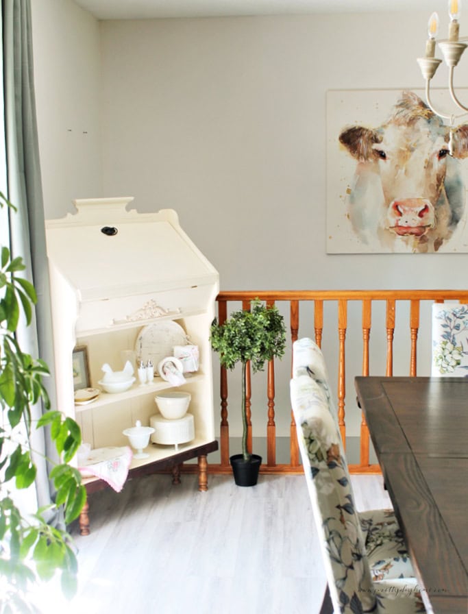 This little side table was in such rough shape it probably should have gone straight to the burn pile, but the price made it worth attempting. The fresh coat of white paint makes it feel bright and cheerful now, and the rub-on transfer draws your eye just enough to hide all the little flaws that couldn’t be fixed. It’s far from perfect, but it has charm and a new sense of purpose. I definitely took on more than I expected with this one, but standing back and seeing it by the front door now, I’m glad I didn’t give up on it.