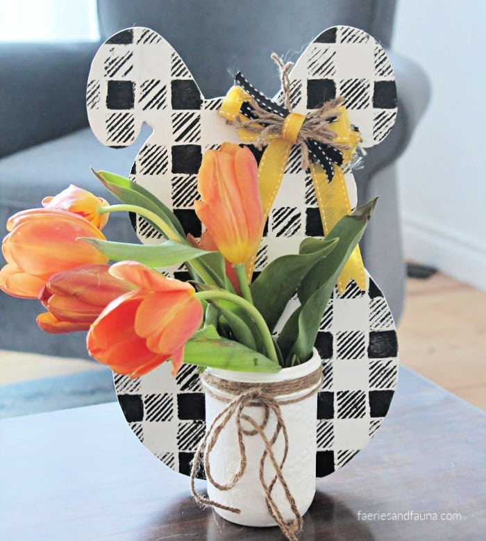 We are so fortunate to have both Dollarama and Dollar Tree at our fingertips, eh! I’m sure thankful for my abundant dollar store crafting stash during this time of isolation. Your bunny centerpiece is so cute with your signature black & white plaid! Happy Easter